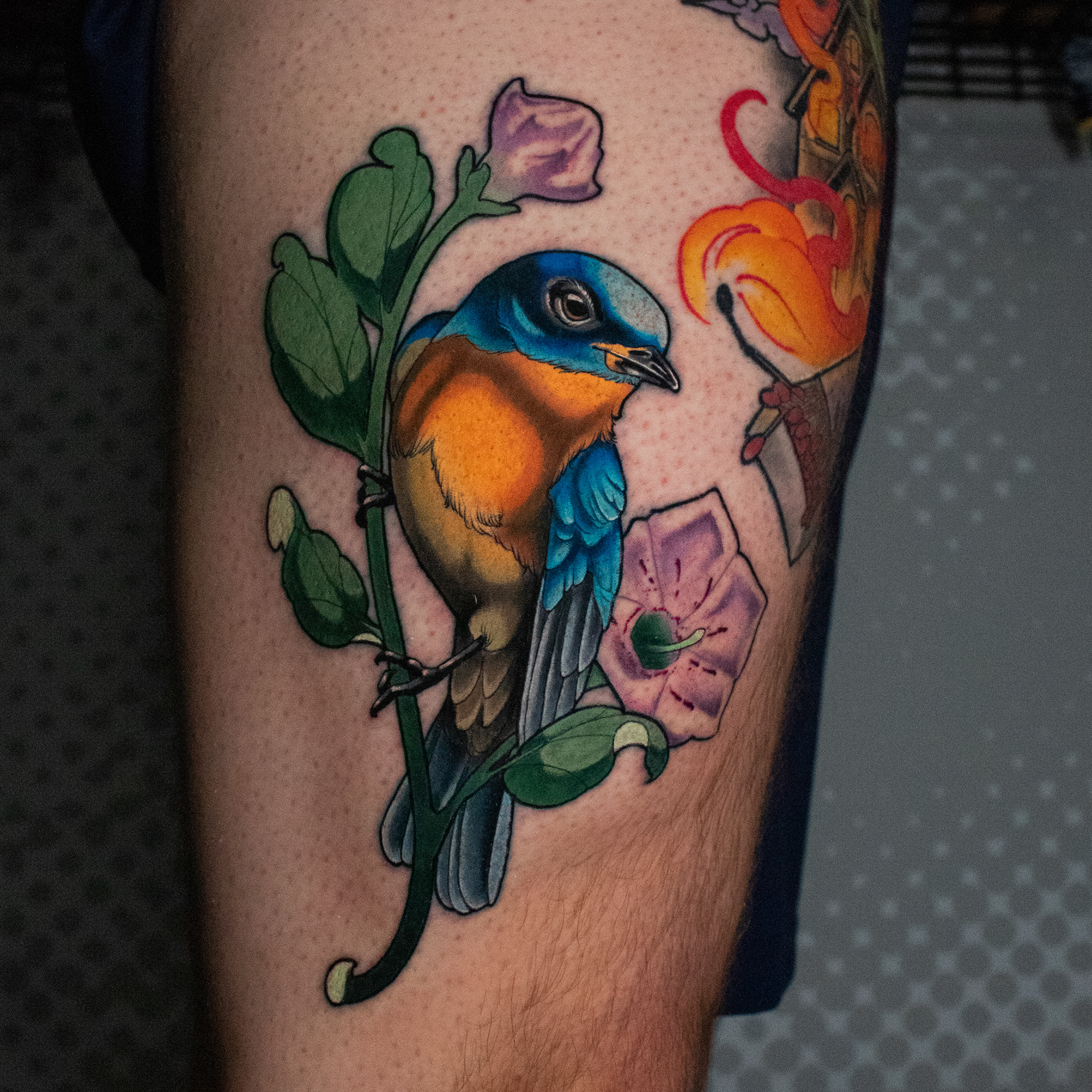 I am a tattoo artist, specializing in Neo-Tradtional work since 2017. My style is known for bold lines, rich color, and strong composition, bringing a balance of timeless technique and modern influence to every piece.
